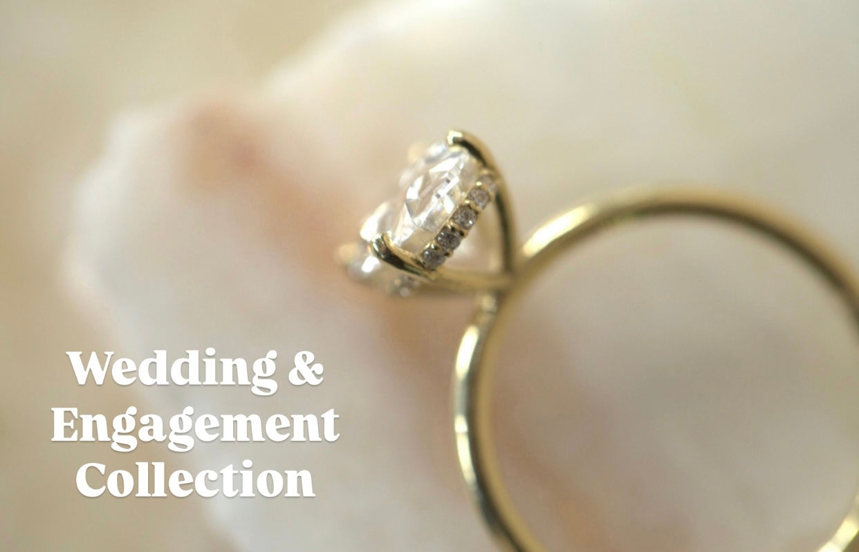 Lab diamond (select stone size). 14k gold (select color). Made in Santa Monica,CA.
